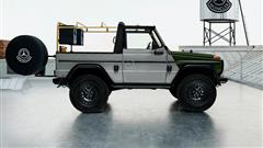The Project G-Class Past II Future is a one-of-a-kind concept car based on a 1990s convertible G-Class. This vehicle was modified by designer NIGO and presents a two-tone matte finish in grey and olive green, punctuated by black and gold accents. Perhaps the most eye-catching feature is its soft top, which draws inspiration from Moncler’s famous puffer jackets. This padded roof contrasts sharply with the G-Class’s traditionally rugged look, giving the vehicle a surreal, avant-garde style that is bound to be polarizing. The concept model also sports a golden fuel canister, a flashy addition that’s anything but typical for off-road vehicles, alongside a custom-built sound system that includes boom boxes mounted on the roof’s linkages. The concept’s interior takes on a similar vibe, featuring retro-inspired fabric seats, black steel wheels, and other details that highlight the vehicle’s throwback aesthetic.