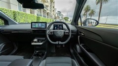 The centre console has been completely redesigned as well. Instead of the low-profile tray and floating wireless charging pad used in the current MG 4, the new version features a taller console. The wireless charger now sits alongside the gear selector, cup holders are positioned higher for easier access, and a pass-through storage space underneath adds practicality. Overall, the cabin now appears to feature more soft-touch materials and a smoother, more rounded design language compared with the sharper, more minimalist interior of the outgoing model. The steering wheel has also been subtly refreshed, retaining familiar button functions but introducing a new spoke and rim design.