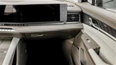 The inside features the well-known 47-inch triple-screen layout, which consists of an LCD instrument panel, a central control display, and an LCD screen in front of the front passenger that is powered by a Qualcomm Snapdragon 8155 chip for in-car functions and entertainment. There is a three-spoke steering wheel in front of the driver. There are air vents and piano-style multimedia buttons concealed behind the triple display. There are 12 Bose speakers in the sound system.