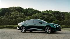 The model's strong body gives it an aggressive appearance in terms of design. The proportions, low-slung silhouette, slim coupe-style roofline, and frameless windows all point to a front-wheel drive platform. Sharp LED headlights and aggressive intakes, reminiscent of the MG Cyberster concept, define the front appearance.