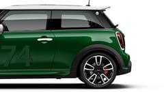 The John Cooper Works Hardtop 2 Door serves as the foundation for the Mini Anniversary Edition. It only comes in a British Racing Green body with red-edged white hood stripes. A white roof and mirror tops are present. The package also has a panoramic moonroof. It also has the number 74 conspicuously displayed on its hood, as a nod to the Mini Cooper's first race, which it won.