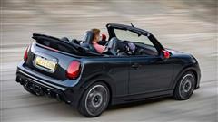 The taillight design also varies between the hatchback and convertible. The convertible retains the taillight design from the previous generation model, while the hatchback features a unique design. Both JCW models also feature distinctive 17- and 18-inch wheel designs.