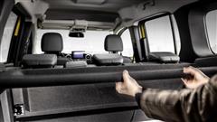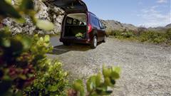 Both sides of the minivan have sliding doors, allowing simple access to the rear bench, which is large enough to fit three child seats. Folding tables or compartments on the seatbacks are also available to rear passengers.