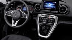 The interior is identical to that of the Citan Tourer with improved specifications. In the available Style and Progressive lines, the T-Class gets more standard equipment, such as the MBUX infotainment system with a 7-inch touchscreen and Apple CarPlay / Android Auto compatibility. However, because the T-Class only has a 5.5-inch screen between conventional gauges, there is no digital instrument cluster. Several Renault, Nissan, and Dacia cars share the climate controls.