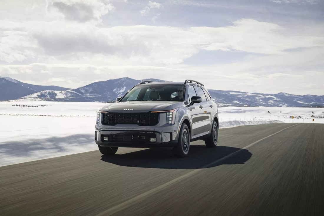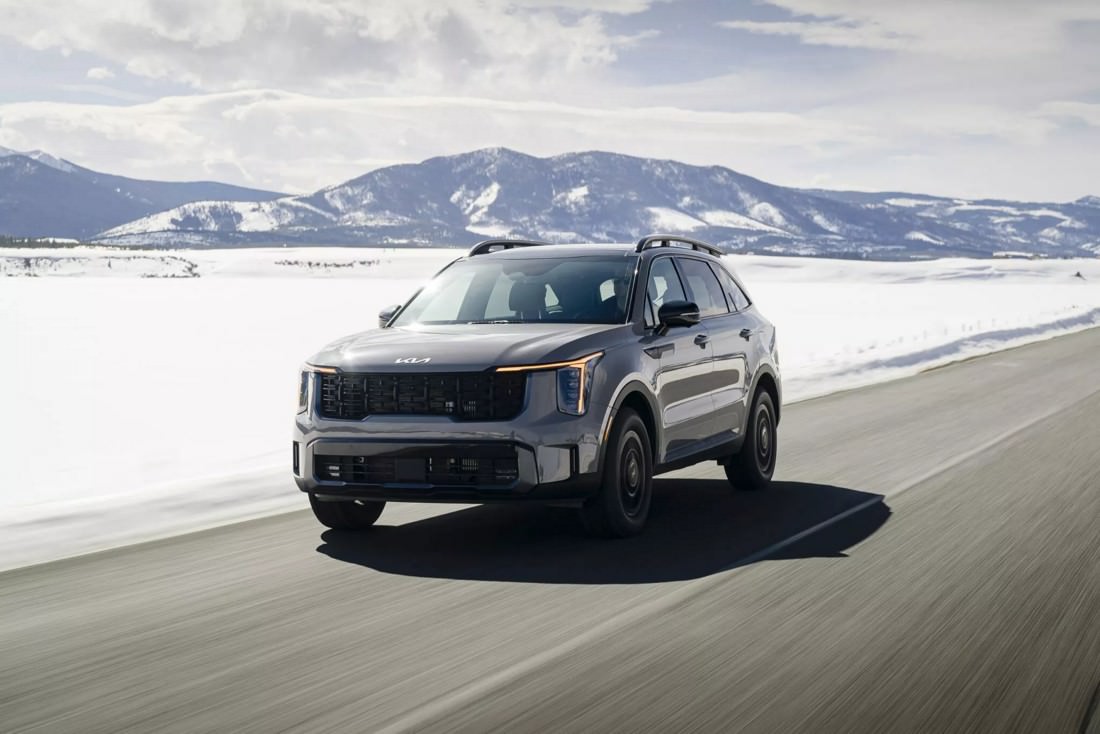 For shoppers seeking more premium touches, the Sorento EX, starting at $38,290, offers a new optional Premium Package priced at $2,000. This package, however, is limited to the front-wheel-drive variant. It enhances comfort and luxury with the addition of second-row captain’s chairs, a panoramic glass roof, and a Bose premium audio system. On the design front, Kia has also refreshed the X-Line and X-Pro trims by equipping them with gloss black exterior accents, including a black grille and a matching intake surround. Additionally, the X-Line EX now comes with a Bose audio system as part of its standard equipment list.