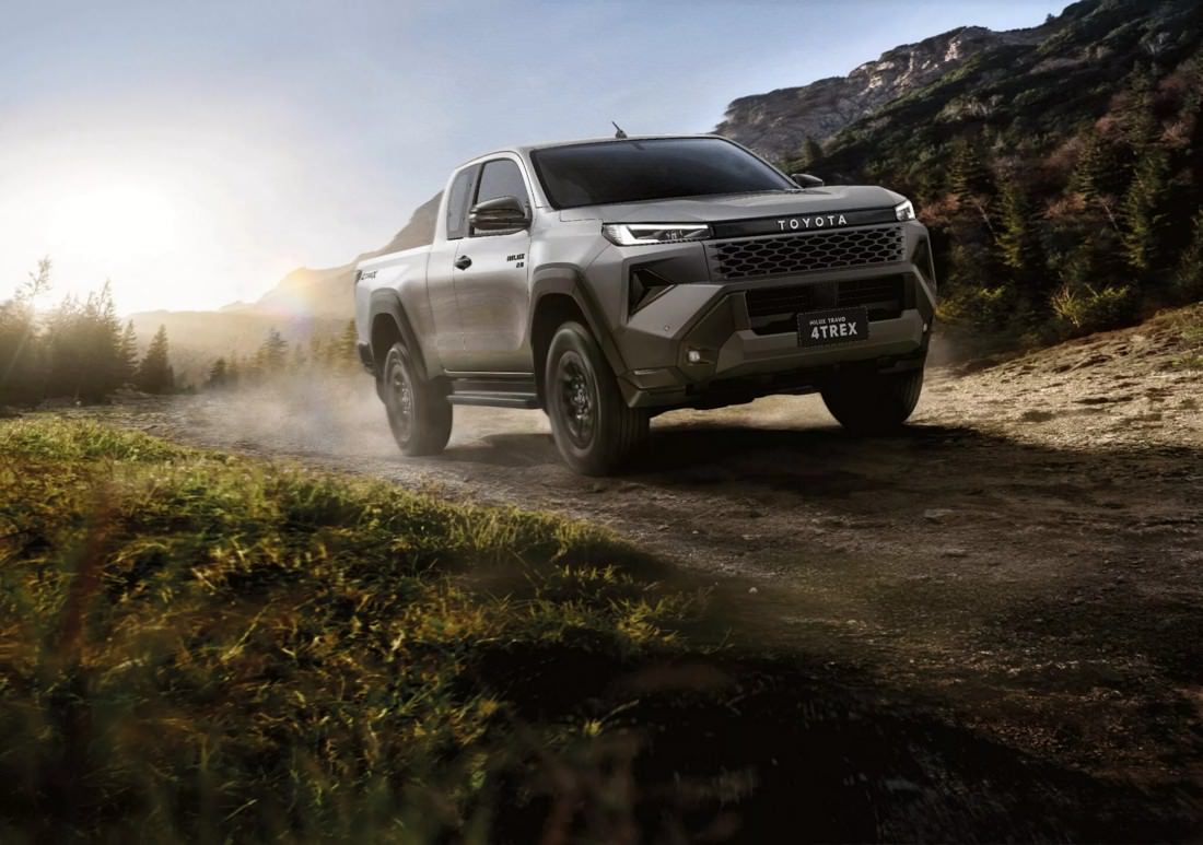 Its overall size remains consistent with the previous model, measuring 5,320 mm in length and a 3,085 mm wheelbase. In Europe and Australia, Toyota is offering only the dual-cab configuration, while markets like Thailand will continue to provide Single Cab and Smart Cab options. The new styling concept, named “Cyber Sumo,” departs from the hammerhead design used in other recent Toyota models. At the front, slim LED headlights flank a body-colored honeycomb grille, complemented by angular bumper intakes and a sturdy skid plate, giving it a purposeful and solid look. The fully electric version features a unique bumper with a closed grille and redesigned intakes, signaling its zero-emission nature.