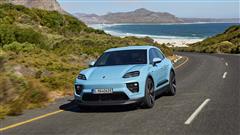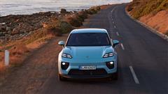 The electric Macan also introduces a new Slate Grey Neo color and 20-inch wheels, along with an off-road design package. This package enhances the approach angle to 17.5 degrees and increases ground clearance by 0.4 inches, reaching a total of 7.6 inches. When the standard air suspension is set to its highest setting, the ground clearance can be elevated to 8.8 inches. The off-road package also features distinctive elements such as a different front bumper, side skirts, diffuser, and roof railings, which can be painted either in Vesuvius Grey or matched to the vehicle’s body color.