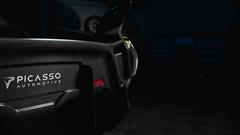 Picasso Automotive could reach this weight thanks to the large use of carbon fiber. With noticeable fenders, a big splitter, intakes between the headlamps, gigantic inlets, a rear wing, and a large diffuser, the entire bodywork is constructed of carbon fiber.