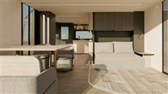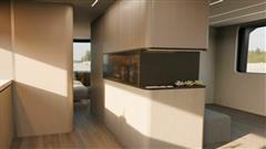 Inside, the eTH exudes a modern and opulent ambiance. The interior comprises a cozy living room, a well-equipped kitchen area, a comfortable bedroom, and a stylish bathroom, all enhanced by collapsible and modular furniture. Adding to its versatility, the dashboard is designed to convert into a functional workspace, facilitated by a retractable steering wheel and rotating seats.