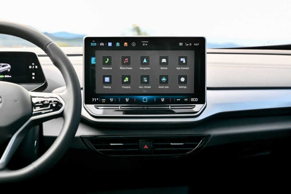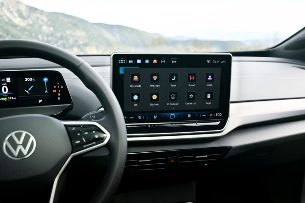 Buyers continue to have the option between 62 kWh or 82 kWh battery packs, with the latter offering the power upgrade. Additionally, vehicles equipped with the larger battery pack benefit from the ID.4's new infotainment display, featuring a spacious 12.9-inch screen with backlit temperature sliders, enhanced climate control interface, and improved menu layout. Unfortunately, models with the base battery pack retain last year's criticized 12-inch infotainment system.