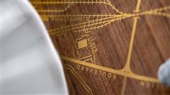 Other subtle references to the film include a map of Fort Knox, inlaid in 22-carat gold, on the picnic tables, and a hand-drawn map of the Furka Pass on the dashboard. The starlight headliner replicates the night sky as it appeared on the final day of filming at the Furka Pass in 1964.