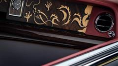 Commissioned by a discerning client in China to commemorate the Year of the Dragon in 2024, the Phantom Dragon is a one-of-a-kind creation that pushes the boundaries of automotive artistry. While the exterior maintains a subtle elegance with an understated Iced Diamond Black finish, the interior explodes with vibrant personality. Ardent Red leather envelops the front seats, dashboard, steering wheel, and door panels, creating a striking contrast against the darker exterior. A poignant touch is the incorporation of the owner's family name, meticulously embroidered into the headrests using ancient Chinese calligraphy, adding a personal and deeply meaningful dimension to the vehicle.