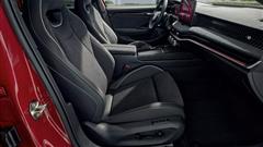 Inside, the Superb Sportline offers a refined and sporty interior. The standard heated sports seats come with integrated headrests and a massage function, while there is also an option for AGR-certified ergonomic sports seats that are electrically adjustable, heated, and ventilated for added comfort. The cabin maintains a dark and sporty theme with Microsuede and artificial leather upholstery, a black roof lining, and carbon-style inserts on the dashboard and door panels. Other interior features include stainless steel pedals and a steering wheel adorned with the Sportline badge, reinforcing the sporty character of the trim.