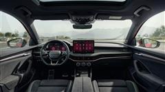 The Superb Sportline comes well-equipped with a range of standard features, such as a 10-inch Virtual Cockpit with unique graphics tailored to the Sportline trim, a 13-inch infotainment display, customizable ambient lighting, and laminated glass for enhanced sound insulation, ensuring a quiet and comfortable ride.