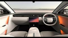 The interior of the Avinya X concept embodies a minimalist yet refined aesthetic. A large, centrally positioned infotainment screen, reminiscent of those found in recent JLR models, takes center stage, complemented by a sleek digital instrument cluster. The cabin is further enhanced by the subtle glow of ambient lighting and an abundance of soft-touch leather surfaces, creating an atmosphere of understated luxury.