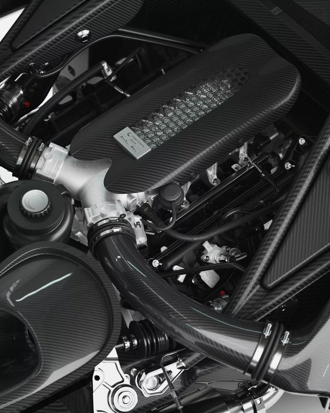 Beneath the sculpted carbon body sits a carbon-fiber monocoque chassis, paired with pushrod Bilstein dampers, double-wishbone suspension, and carbon-ceramic Brembo brakes. The 01 Zagato offers three driving modes — Comfort, Sport, and Track — and features an electric power-assisted steering system that disconnects at high speeds for a pure mechanical feel. Power comes from a mid-mounted, supercharged 5.2-liter Ford-based V8, refined by Capricorn to deliver over 888 horsepower and 1,000 Nm of torque. With a dry weight under 1,200 kg, the car rockets from 0–100 km/h in under three seconds and reaches a top speed of 360 km/h.