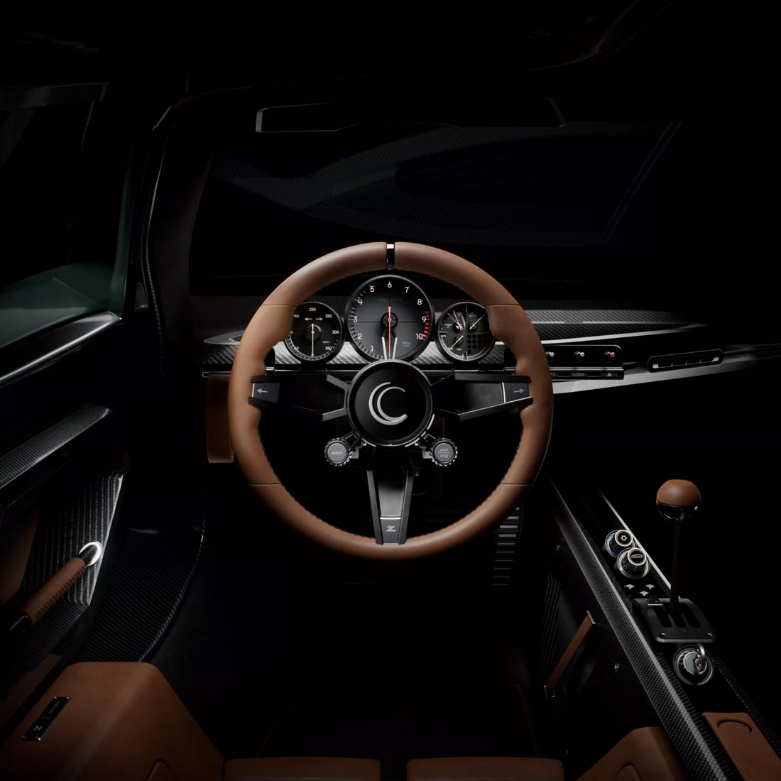 Inside, the 01 Zagato stays true to analog tradition. The minimalist cockpit features mechanical dials, a central rev counter, and a retractable screen for the rearview camera — no large infotainment display in sight. Capricorn compares this analog resurgence to the comeback of mechanical watches after the Quartz Crisis, suggesting that as luxury vehicles become increasingly digital, true exclusivity now lies in mechanical authenticity. High-quality materials dominate the cabin: titanium and aluminum switchgear, carbon fiber trim, Alcantara, and Connolly leather. Fixed seats with adjustable padding, a customizable steering column, and an adjustable pedal box allow drivers to fine-tune their setup. Practicality isn’t ignored either — there’s even a 110-liter front trunk for luggage.
