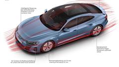Also, in compare with the Audi A7, this vehicle has a lower ground clearance about 17 millimeters. That makes the car sportier and also provides a very easy handling. wheelbase of Audi E-Tron GT is 2.90meters. this vehicle has 405 liters capacity for the luggage. For the RS model this capacity is reduced to 366 liters.