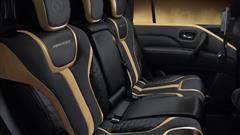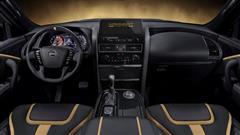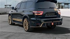 The aggressive bodykit that comes standard on the Nissan Patrol Nismo comprises big intakes, a front splitter, a rear wing, and a sizable diffuser. We can propose a brand-new set of alloy wheels with a stunning 24-inch diameter and a gold finish.