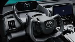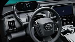 Inside this car shows us what we can expect from the produced bZ4x. the instrument panel is just on the best place for accessibility and visibility. In the same time we can see the large central display, wide center console and textured dashboard can be expected to feature on the production car.