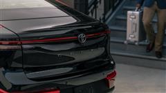 The future of the Crown is still unknown, although the car has a bZ4X-inspired front fascia with narrow headlamps and a big intake that is mostly covered. The plastic body wrapping and 19- or 21-inch wheels can be seen further back.