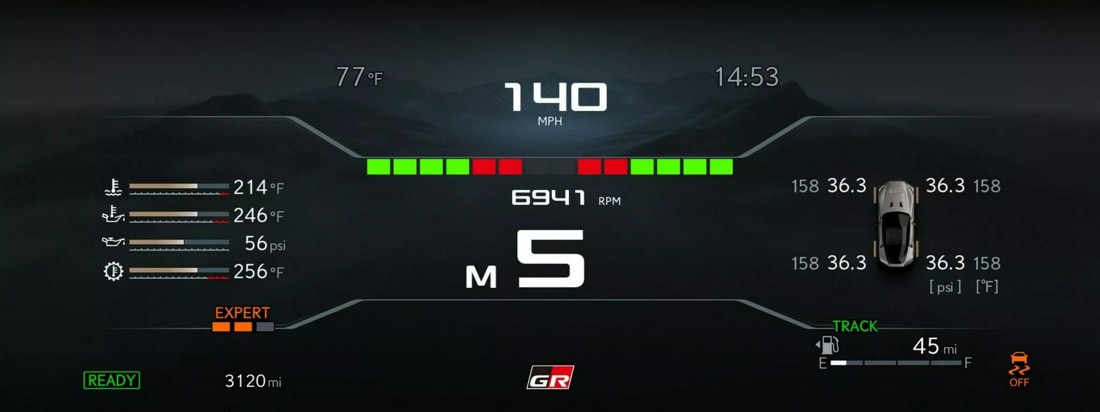 The interior represents a sharp departure from the cabins of typical Toyota models. Dominated by bold red leather and Alcantara, the cockpit features a custom digital instrument cluster with exclusive graphics, a newly designed GR steering wheel, paddle shifters, and a prominent infotainment display in the center. While it may not deliver the artistic flair of a Lexus LC500’s interior, it clearly prioritizes functionality and performance-focused ergonomics.
