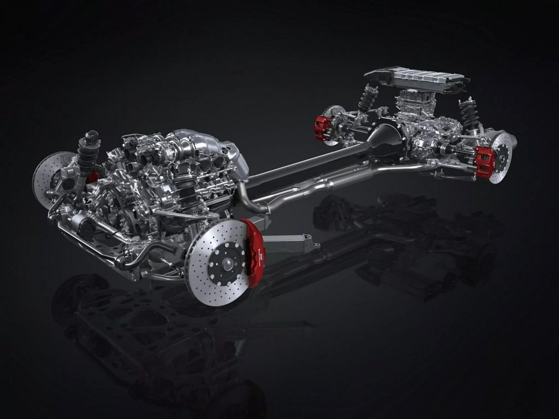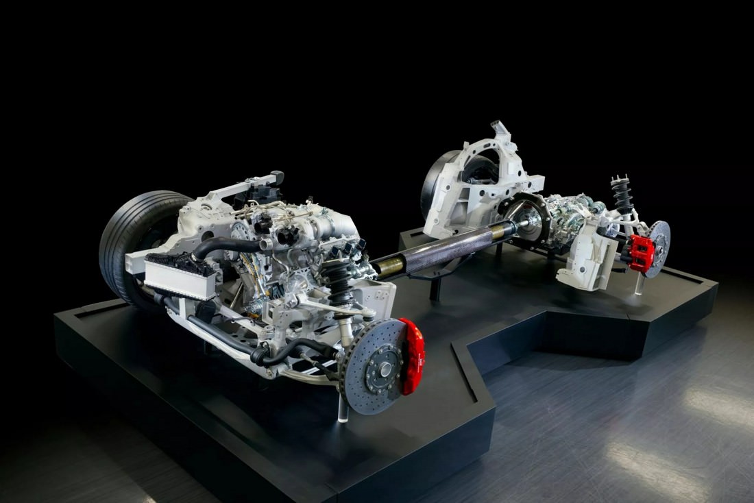 Under the hood—or more accurately, beneath its sculpted bodywork—sits the long-rumored 4.0-liter twin-turbo V8, which indeed turns out to be real. This sophisticated engine uses a dry-sump lubrication system and is paired with a rear-mounted eight-speed automatic transaxle specifically engineered for the car. Power is directed exclusively to the rear wheels. Toyota claims output will be at least 641 horsepower and 850 Nm of torque, though the final numbers may exceed these early estimates. The presence of an additional electric motor suggests even sharper throttle response and potentially greater overall performance.