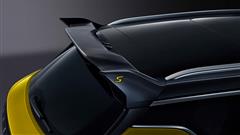 The yellow Binyue Pro in these images has red brake calipers, a prominent spoiler that extends from the top, quad tailpipes, a blacked-out bumper, a diffuser, and black wheels.