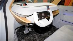 The identification. Life, too, lacks side mirrors and instead relies on cameras. the identification LIFE features a projection screen that stretches from the dashboard and covers the inside of the windscreen. The multimedia is then shown on this large, 34-inch screen using a projector. VW has installed a retractable projection screen as well as a gaming console, which we're quite sure won't be available on the 2025 production car.