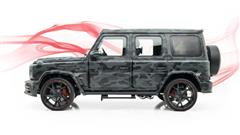 The Mercedes Benz G63 tuned at a glance that he plays his grunt with a danger that falls outside, which has a lot of body conversion and tremendous missiles longer wings and doors. Its bonnet, bumpers, roof connections, backup wheel carriers and other parts consist of carbon fiber and additional front lights, 24-inch wheels shod with sticky tires 295 / 30, and end of lush color British surface.