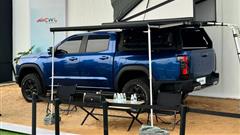 The rear of the KP11 also exhibits a strong resemblance to the Ford Ranger Raptor, with similar LED taillights and a large "CHERY" emblem stamped into the tailgate. To emphasize its adventurous nature, the prototype is equipped with camping accessories such as a bed rack and a rooftop tent.
