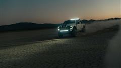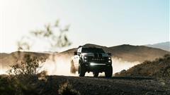 The Fox 2.0 dual steering stabilizer, new front radius arms, 20-inch wheels with 37-inch BFG KM3 tires, front coilovers, and Fox shocks are all included with the Ford Shelby F-250 Super Baja.