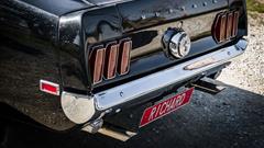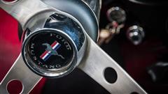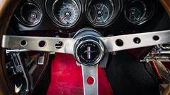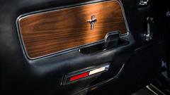 The interior is fully imported to replace the perished and rusted parts. From the full dash, gauge cluster, AM/FM radio, three spoke drilled and wood trim steering wheel, seats and door trims. The B&M sport console shifter is probably the only item inside this Mustang which is not original but rather time correct. this vehicle did not come with the inside dash-tach nor its steering column mounted sibling. That is where Richard chose to set it with one hood-mounted exterior tachometer which beautifully complements the exterior elements and also the driving experience.